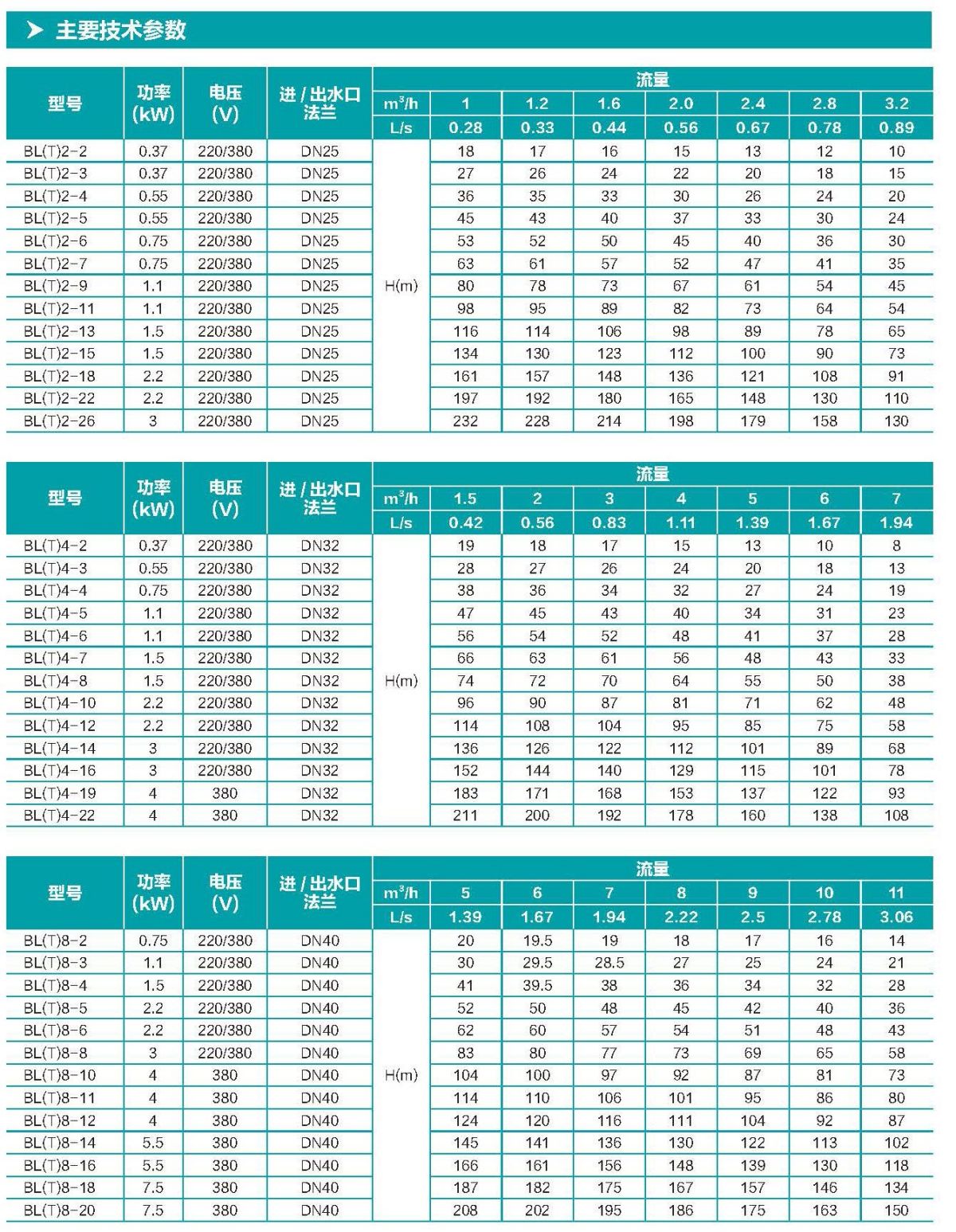 BL(T) 系列輕型不銹鋼立式多級(jí)離心泵,是吸收了國(guó)內(nèi)外先進(jìn)技術(shù)而設(shè)計(jì) 制造的非自吸立式多級(jí)離心泵,采用標(biāo)準(zhǔn)立式電機(jī)和合金機(jī)械密封,更換 非常方便。BL 泵過(guò)流部件全為不銹鋼材料,BLT 泵過(guò)流部件部分為鑄鐵件, 可適用于輕腐蝕性介質(zhì)。產(chǎn)品投放市場(chǎng)后,以其高效節(jié)能、質(zhì)量可靠、使 用范圍廣等特點(diǎn),深受廣大用戶(hù)的喜愛(ài)。