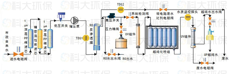 ?系統具備雙路水質檢測顯示功能,可同時檢測和顯示:進水電導率(μs/cm), RO純水電導率(μs/cm),UP超純水的電阻率(MΩ•cm)。
